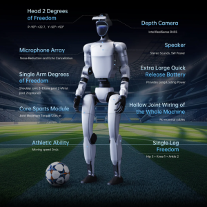 Transforming the technological martial arts landscape. A pioneer in robotic combat with smooth, fluid movements. Powered by a motion-capture training system that enables professional-level performance. From straight punches to left and right hooks, to front kicks—all delivered in flawless sequence. Capable of recovering from heavy impacts. The robot continuously learns new skills. Control it via motion sensing, controller, or voice commands.”